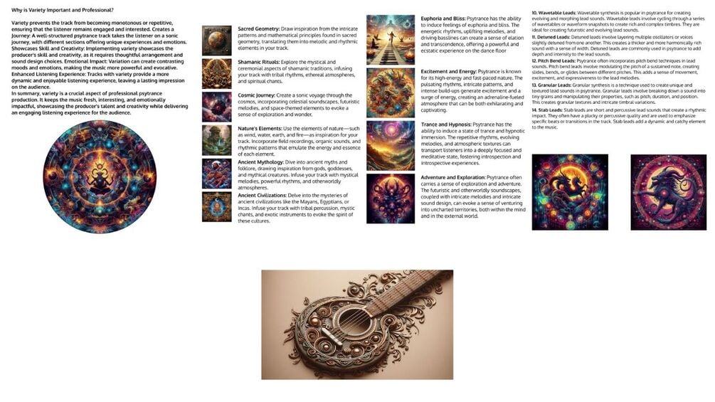Unlock the secrets of psytrance music production with this comprehensive 60-page PDF guide, crafted to inspire and educate both beginners and seasoned producers. This free resource dives deep into the world of psychedelic, psytrance, and Goa music, offering invaluable tips and insights into what makes a psytrance track truly mesmerizing. Discover the essential elements that form the backbone of this genre, including sound design, rhythmic structures, and atmospheric effects. Learn about song structures and the crucial roles that different components play in creating a hypnotic and dynamic experience. With detailed explanations and practical advice, this guide will empower you to elevate your music production skills and infuse your tracks with the psychedelic spirit. Whether you're looking to start your journey or enhance your existing knowledge, this guide is your key to unlocking the full potential of your psytrance creations. Embrace the journey and let your creativity flow!